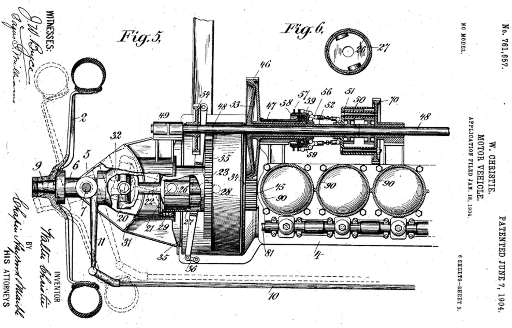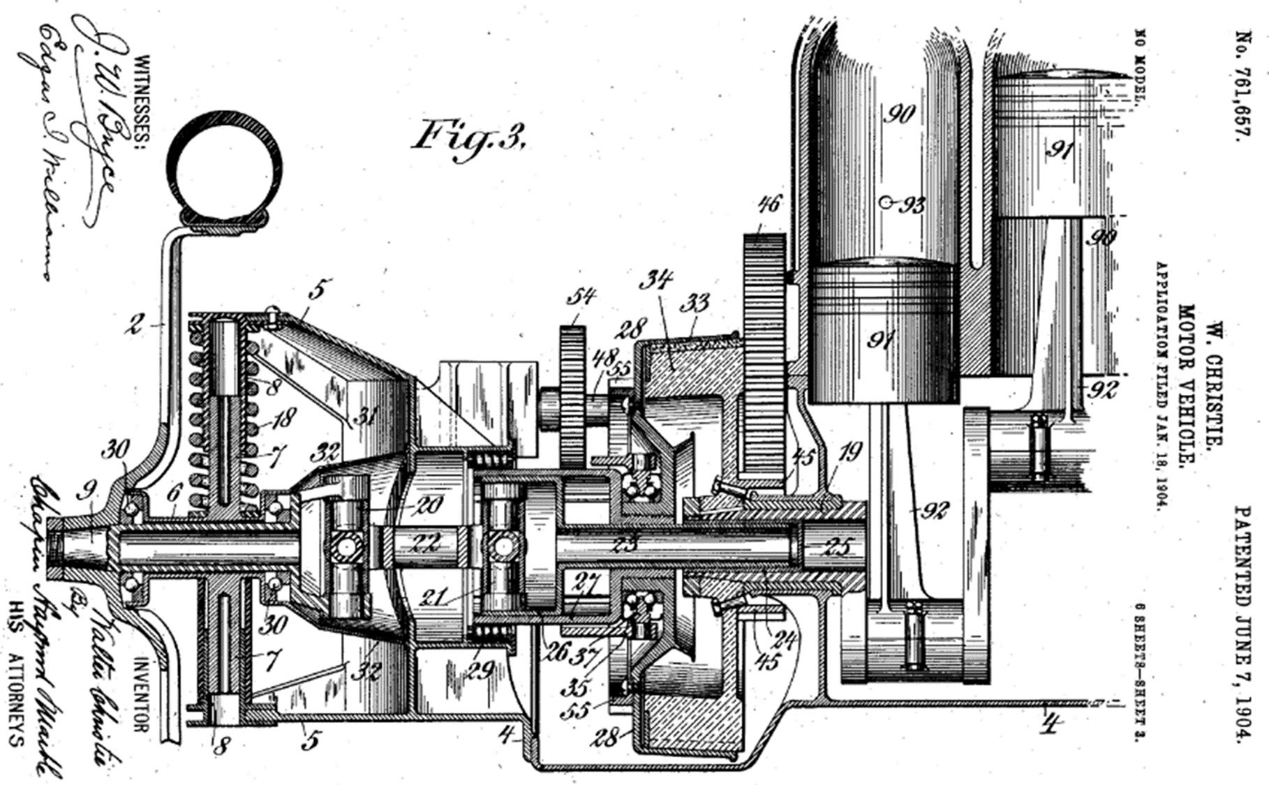 This patent is described in The Automobile of June 18, 1904 as follows:
