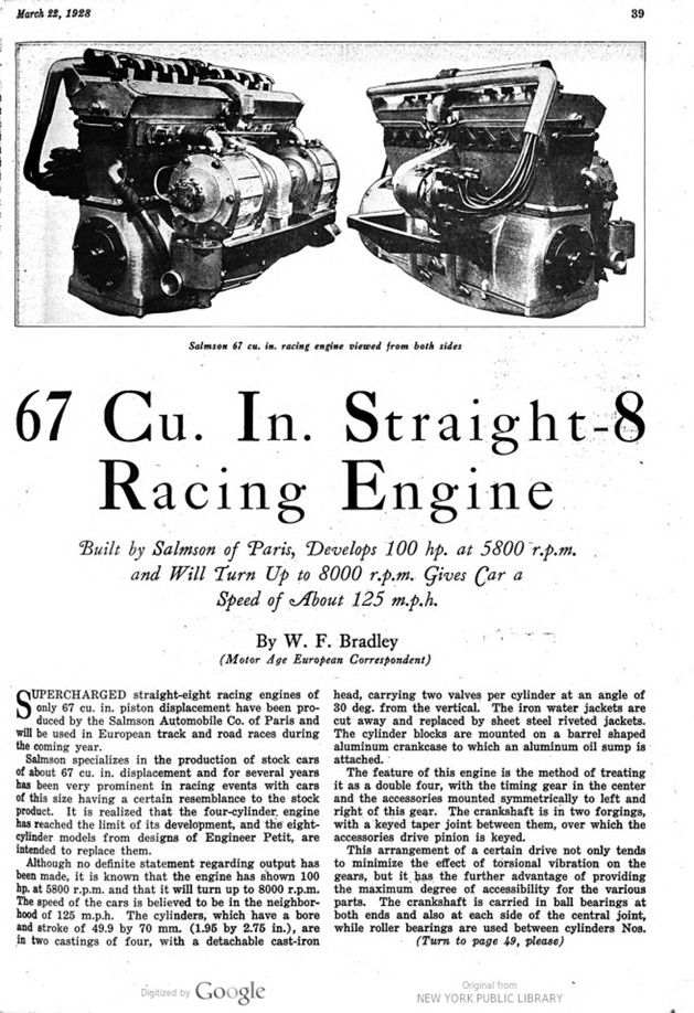 67 Cu. In. Straight-Eight Racing Engine Built by Salmson