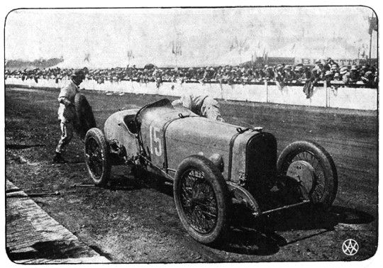 Fig. 1. — André Boillot, in a Talbot-Darracq, changes a wheel in 17 seconds.
