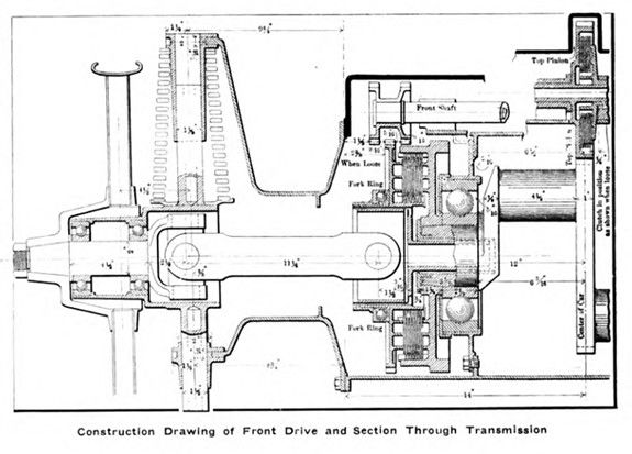 Construction Drawing of Front Drive and Section Through Transmission