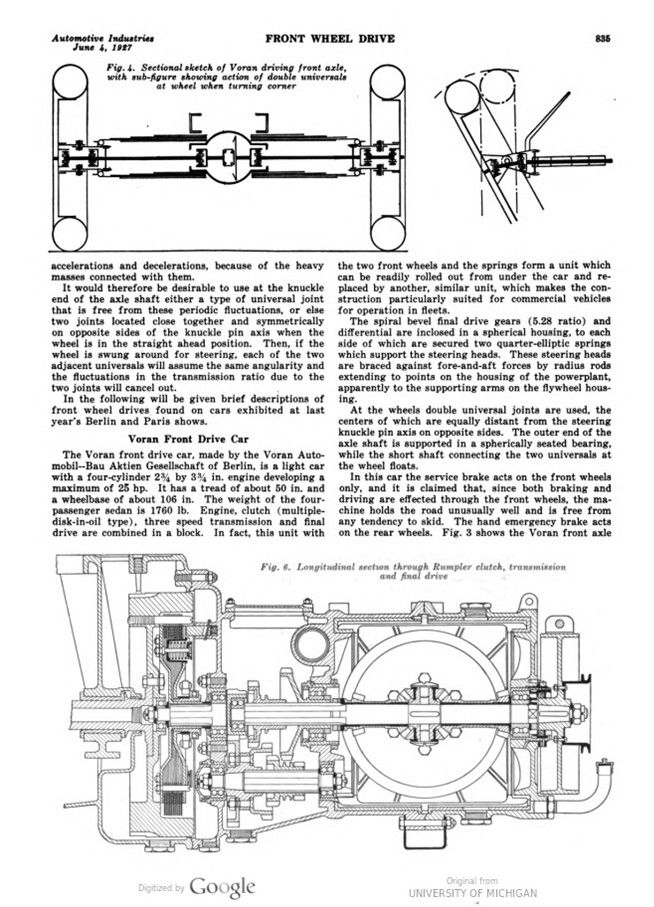 In the following will be given brief descriptions of front wheel drives found on cars exhibited at last year’s Berlin and Paris shows.