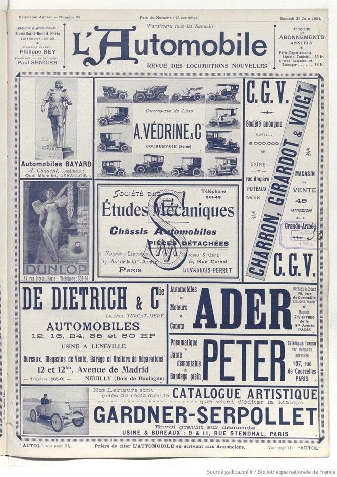 L’AUTOMOBILE, Revue des locomotions nouvelles – Vol. 2, No. 39, June 25, 1904