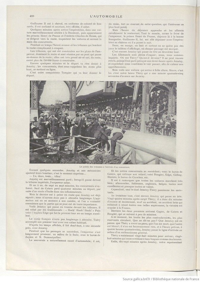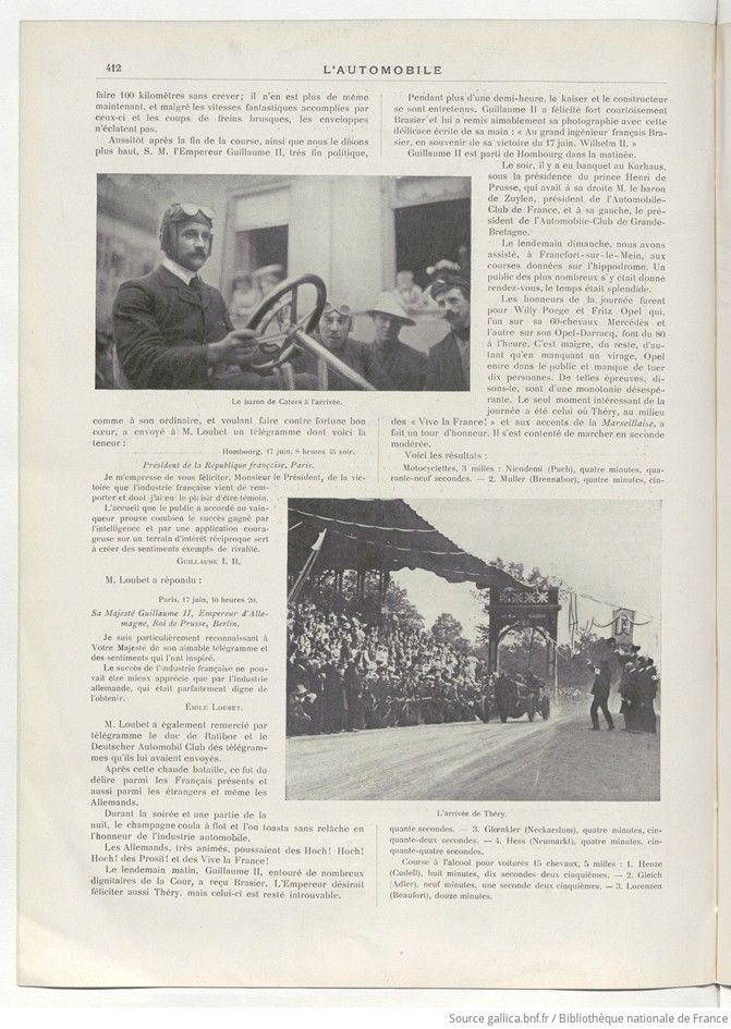 Page 404. The Cup winner, Thery, in his Richard-Brasier car. – The German Emperor in his box.