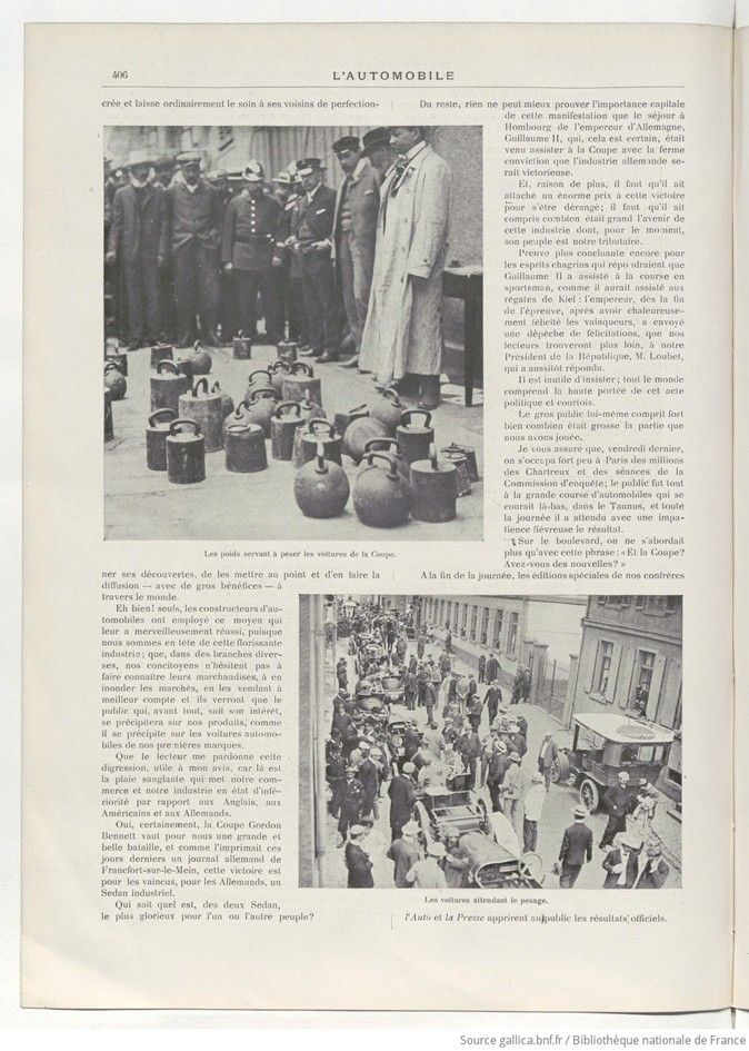 Yes, certainly, the Gordon Bennett Cup represents a great and glorious battle for us, and as a German newspaper in Frankfurt-on-the-Main recently put it, this victory is, for the vanquished—for the Germans—an industrial Sedan.