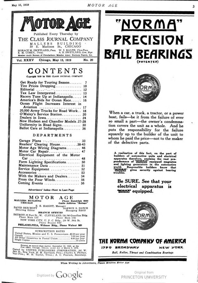 MOTOR AGE – Vol. XXV 35, No. 20, May 15, 1919