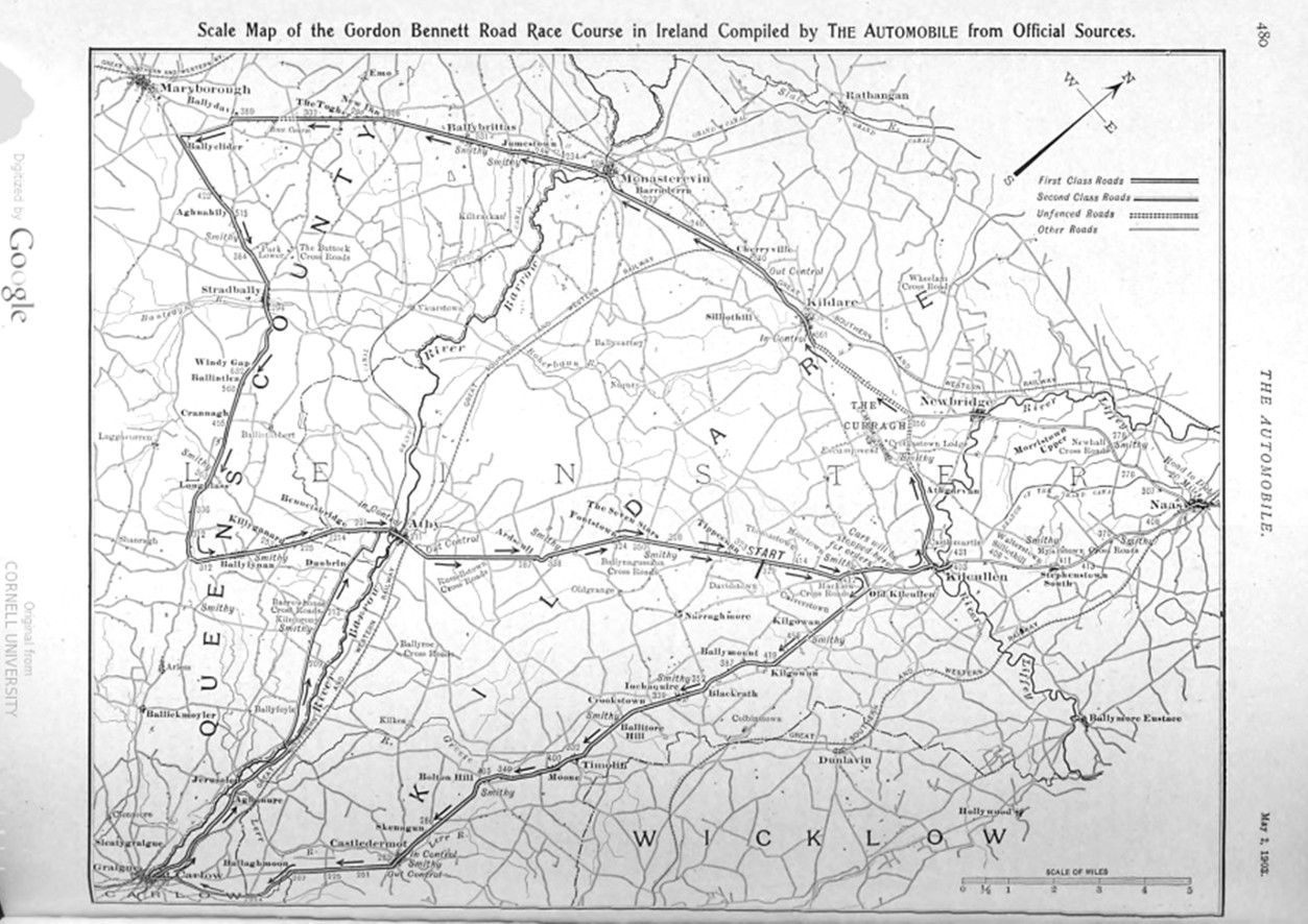 Page 480. Scale Map of the Gordon Bennett Road Race Course in Ireland Compiled by THE AUTOMOBILE from Official Sources.