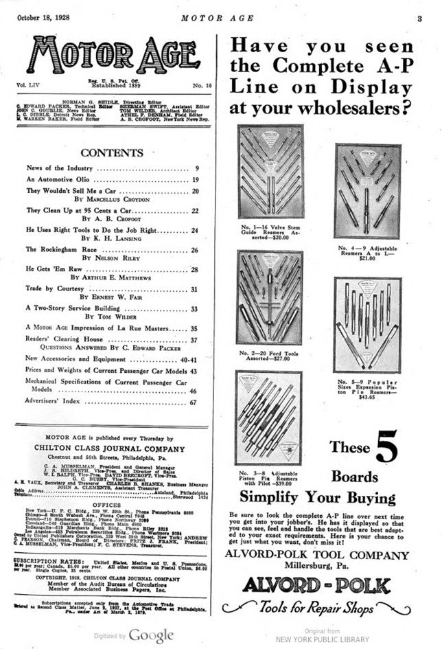 Motor Age, Vol. LIV, 54, No. 16, October 18, 1928
