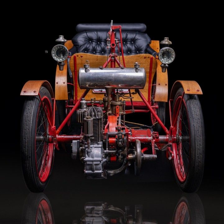 In 1896, he came up with a new variant; although in smaller dimensions, but again with front-wheel drive, rear-wheel steering and a continuously variable friction drive.