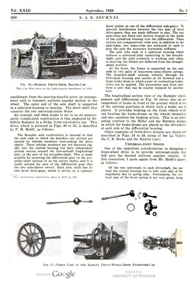 This September 1928 issue of the Journal of the SAE, deals with the up-to-then status of front wheel drive. In all, this very lenghty article comprises of no less that 25 pages, inclusive photograhs. All aspects are discussed; davantages and disadvantages are listed and compared. Almost all known front wheel drives in the US and on the continent are described. As for it’s length, the complete article is divided into four parts; here’s part IV, wishing You an interesting read.