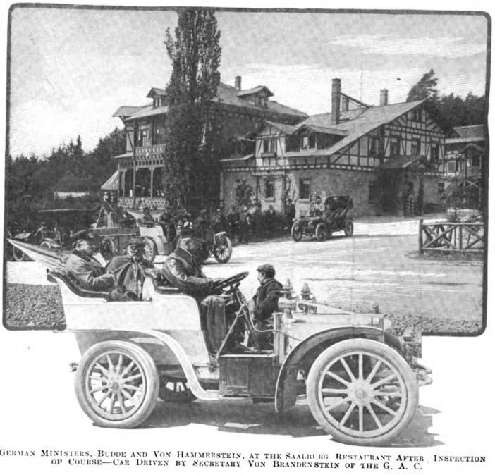 GERMAN MINISTERS, BUDDE AND VON HAMMERSTEIN, AT THE SAALBURG RESTAURANT AFTER INSPECTION OF COURSE – CAR DRIVEN BY SECRETARY VON BRANDEN STEIN OF THE G. A. C.