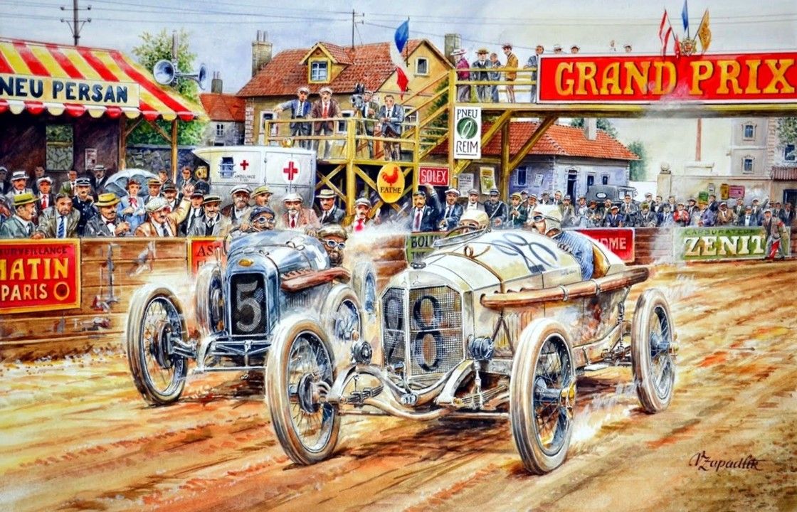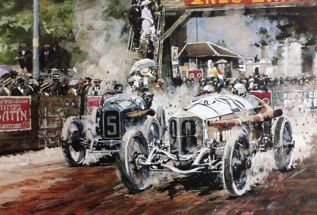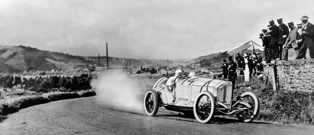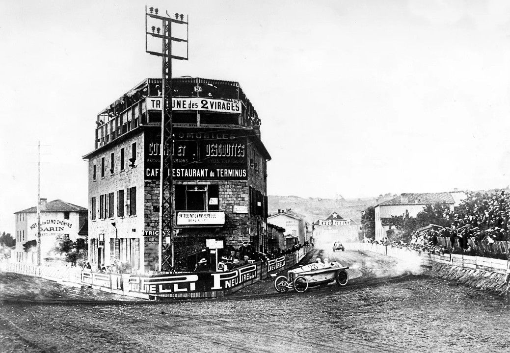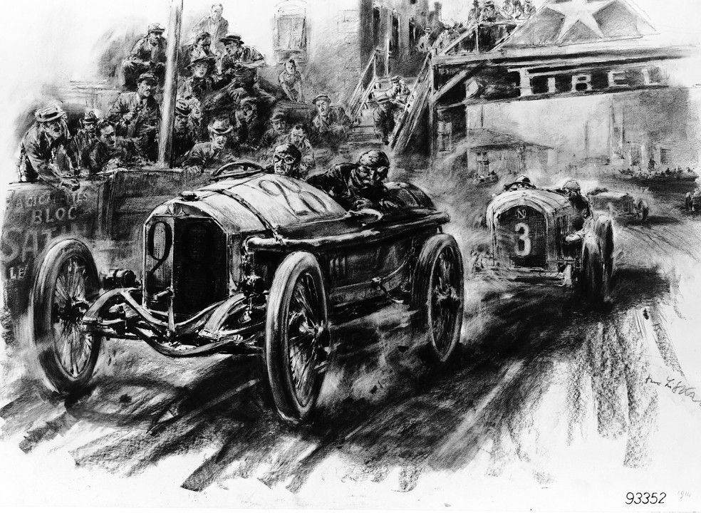 This would be the last Grand Prix before the outbreak of World War I. It was more an automotive battle between two nations. On July 5, no less than 37 (!) cars started on the 37 km course near to Lyon for the 752 km race. Maximum displacement 4.5 ltrs and max. weight 1.100 kg. The Mercedes team, consisting of no less than 5 cars, clearly won. It was also a result of a thorough preparation and a meticulous race strategy. Lautenschlager won, with two more Mercedeses on 2nd and 3rd place. Peugeot came home 4th. From there on, it would need seven dark years, before the next Grand Prix de l’ACF rerurned in 1921.
