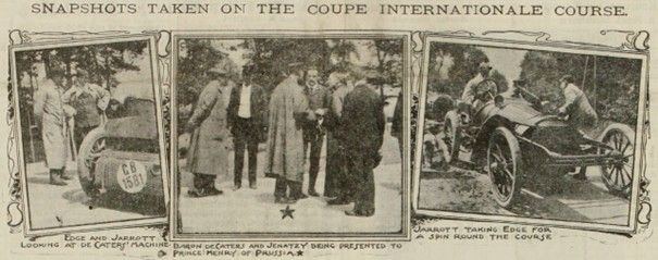 Baron de Caters and Jenatzy being Presented to Prince Henry of Prussia. Jarrott taking Edge for a Spin around the Course.