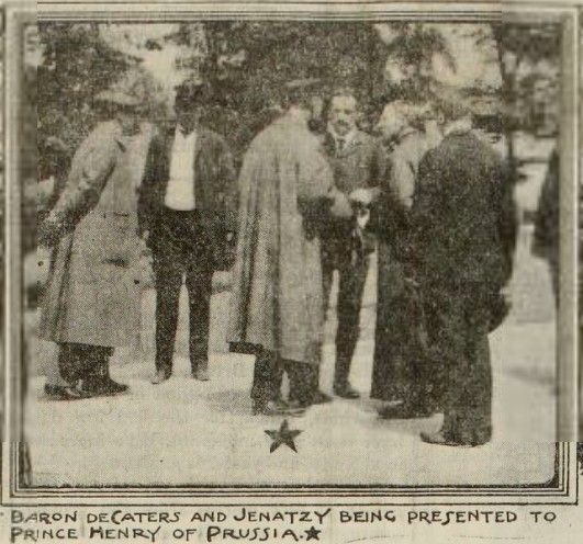 I also noticed Mr. and Mrs. Clarence Gray-Dinsmore, with Mr. Allison V. Armour, whose brother arrives today. Mr. Armour, by the way, accompanied Prince Henry of Prussia on a run on Tuesday from Schloss Wolfsgarten, where the prince is stopping, to Hoechst and hack in a White steam automobile made in Cleveland. The prince, who retains a pleasant recollection of America and is keenly interested in steam automobiles, examined the machine closely and praised it emphatically for its noiselessness, regularity and easy motion over some of the horrible roads.