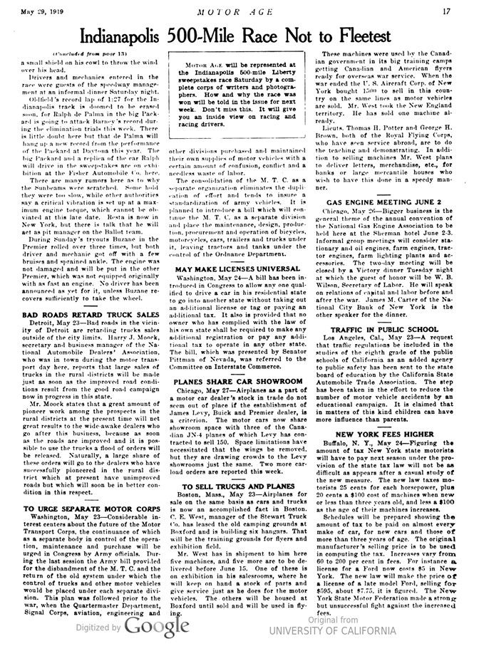 MOTOR AGE – Vol. XXV 35, No. 22, May 29, 1919 (page 13 + 17)
