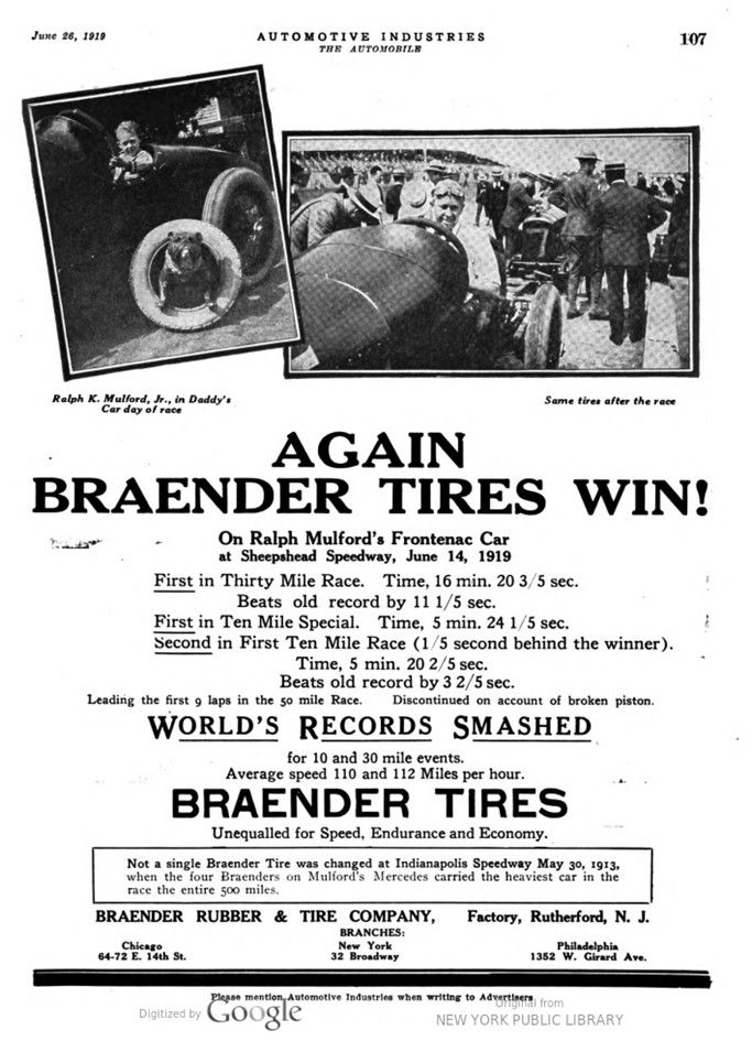 The Frontenacs seemed too lightly constructed for the track. Boyer lost a wheel and Louis Chevrolet lost two by the aluminum drum failing. The latter also broke a steering knuckle and Mulford broke an axle driveshaft.