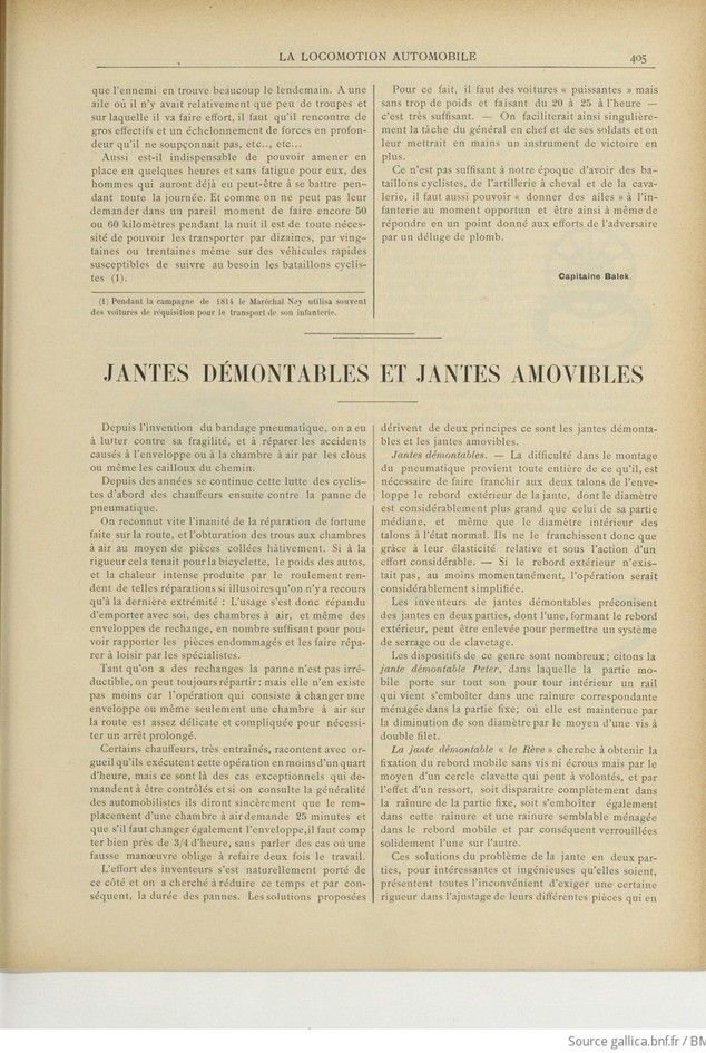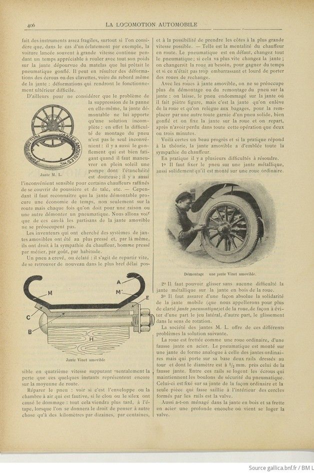 Il faut ajouter que le montage du pneumatique sur une jante amovible se fait au moins aussi facilement que sur une roue ordinaire ; il suffit de munir les boulons de sécurité et la valve d’allonges ad hoc.