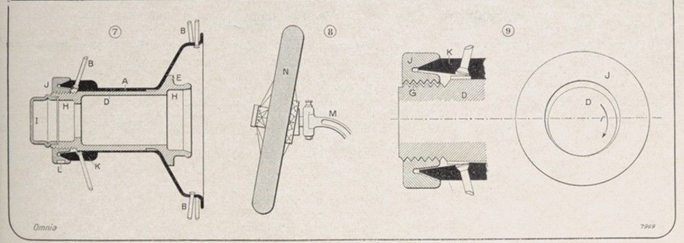 And that’s it. Each of the parts described above is complete; the simplicity of their shape is such that the hub, false hub, and nut can be made (apart from the fluting, of course) entirely on the lathe and mounted as they are for use.