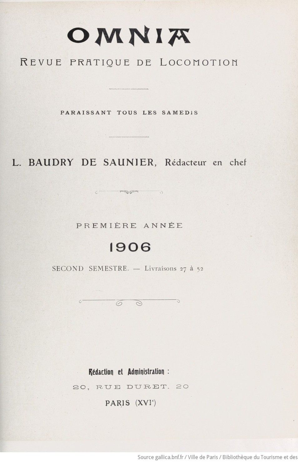 OMNIA – Revue pratique de Locomotion Volume 1. — N° 27. – Saturday July 7, 1906.