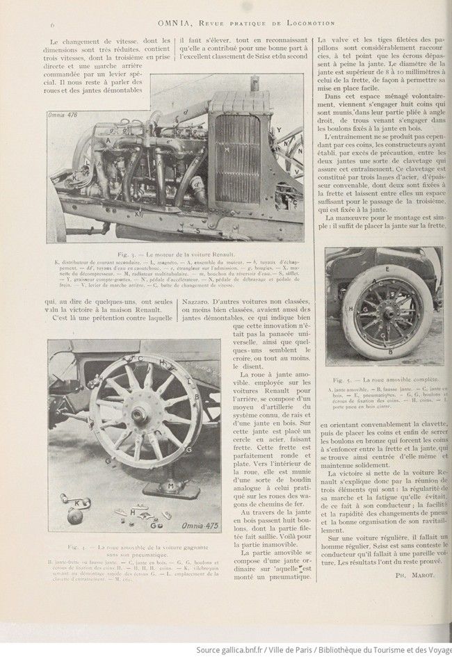 Immediately after the first French Grand Prix in 1906, the technical oriented magazine OMNIA published this article on the winning Renault racecar. Next to the meany technical items of that car, the „jantes amovibles“ or removable rims were highlighted. Important is also the mentioning that Renault’s victory was not solely a consequence of these new and innovative wheel rims, as some other competitors also were equiped with similar rims and they were less or even not classified.
