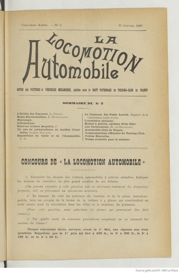 La Locomotion Automobile, 5e Année, No. 2, 13 Janvier 1898