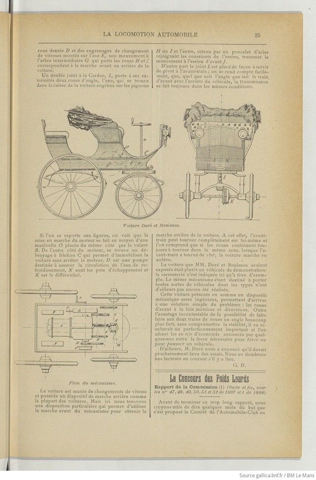 The car that Messrs. Doré and Bouissou had exhibited was more of a demonstration vehicle: the bodywork is shown here only as an example. The same mechanism is intended to carry all kinds of vehicles, the types of which have not yet been produced.