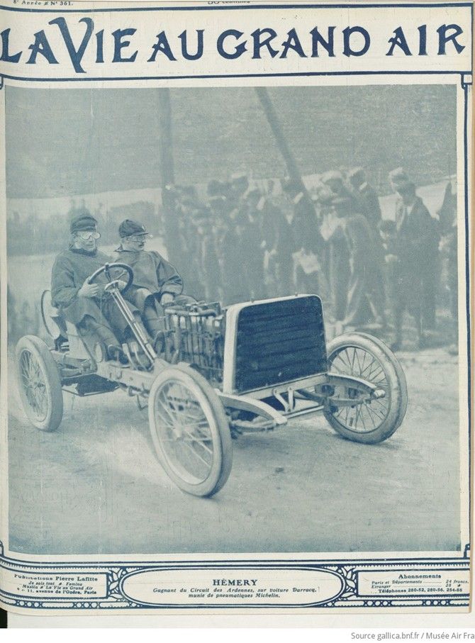 HÉMERY – Winner of the Circuit des Ardennes, in a Darracq car equipped with Michelin tires.