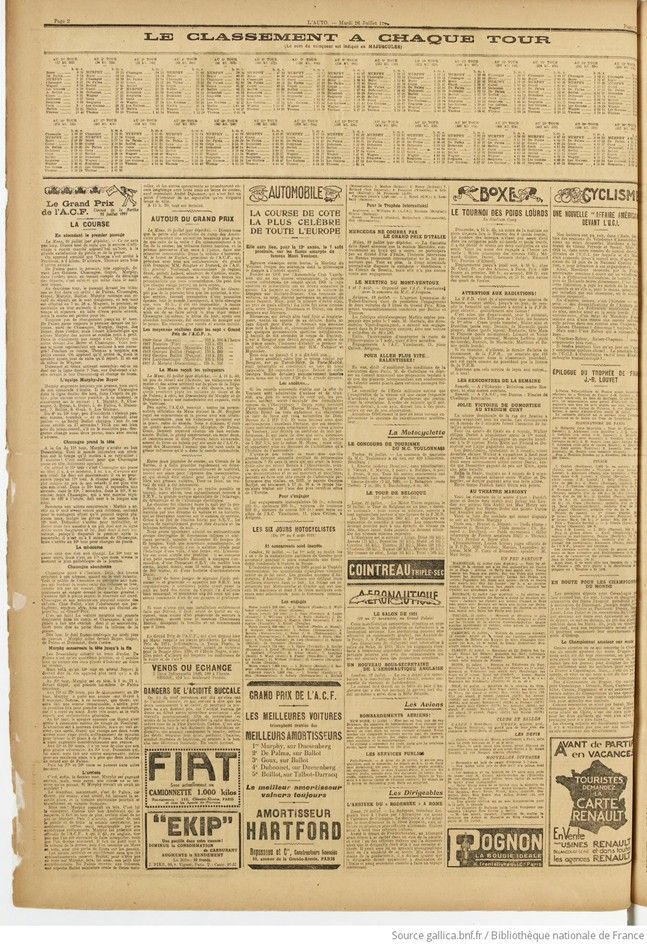 One day after the 1921 French Grand Prix on the la Sarthe road course, the daily magazine or newspaper l’Auto published an extended report on the race. Again, written by none other than Charles Faroux. Here the first part of that report (translated by DeepL.com) in the Tuesday 26th July issue of L’Auto.