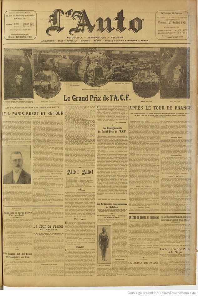 L’Auto, 22e Année, No. 7.529, Mercredi 27 juillet 1921.