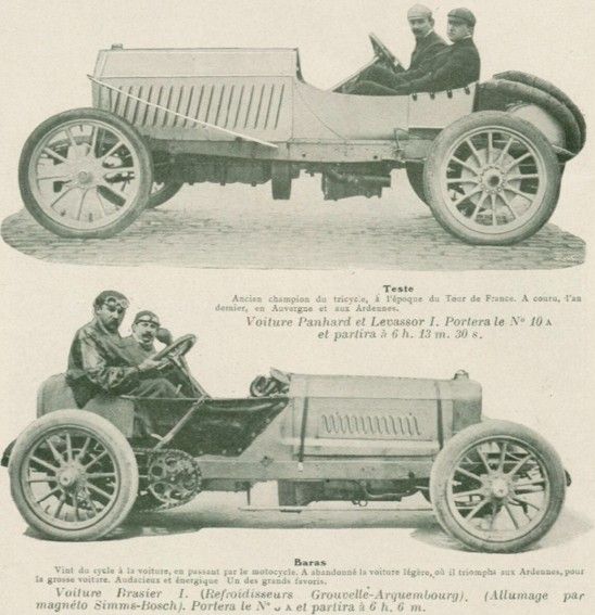 Teste.    Former tricycle champion, in the days of the Tour de France. Last year he raced in Auvergne and the Ardennes. Car Panhard et Levassor I. Will carry the number 10 A and will leave at 6:13:30 a.m.