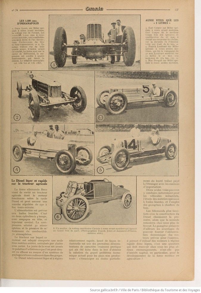 The French auto magazine „Omnia, Revue pratique de Locomotion“ gave in July 1926 a short survey of that year’s Indianapolis racing cars and for August, an addtional short description of the Miller cars.
