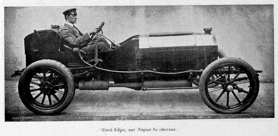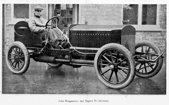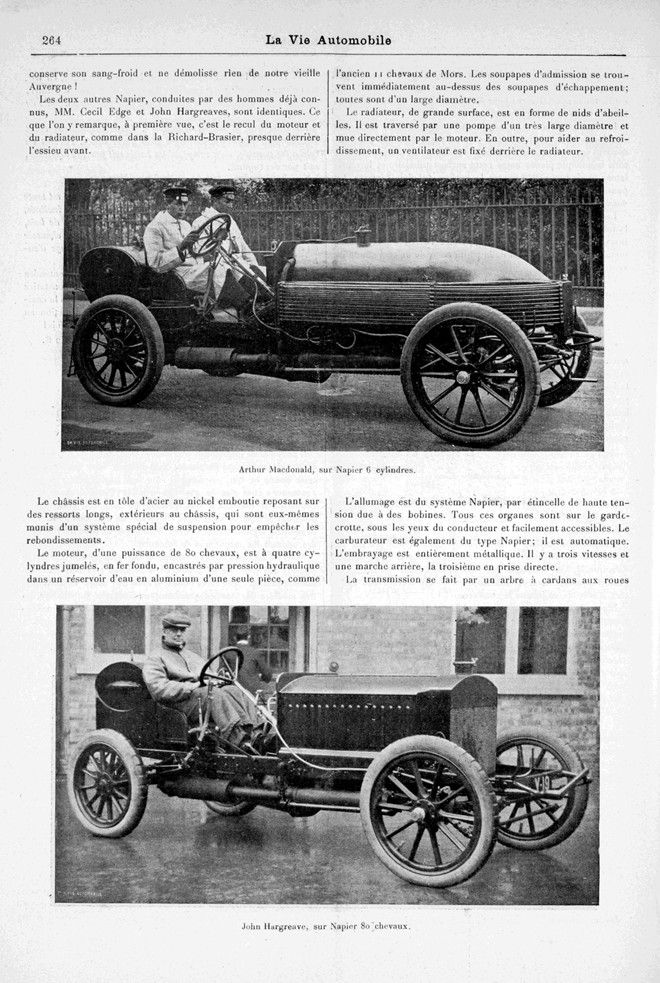 Cecil Edge, in a 80 hp Napier. – Arthur Macdonald, in a 6-cylinder Napier. – John Hargreave, in an 80 hp Napier. – Siddeley, in a Wolseley (horizontal engine). – (The same car, seen on the right).