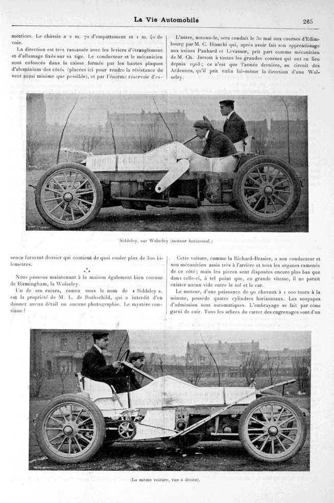 The other, it should be noted, will be driven on May 30 at the Edinburgh races by Mr. C. Bianchi who, after completing his apprenticeship at the Panhard and Levassor factories, took part as Mr. Ch. Jarrott’s mechanic in all the major races that have taken place since 1903; It was only last year, at the Ardennes circuit, that he finally took the wheel of a Wolseley himself.