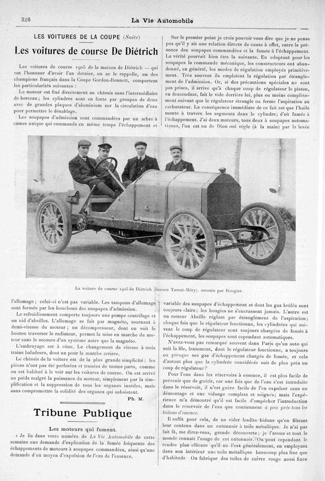 Les Voitures de course De Dietrich er C.G.V. – La Vie automobile – 27 Mai 1905