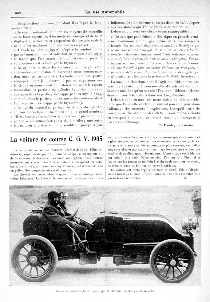 Photo caption. C. G. V. 1900 racing car, 60 horsepower (driven by Mr. Girardot).