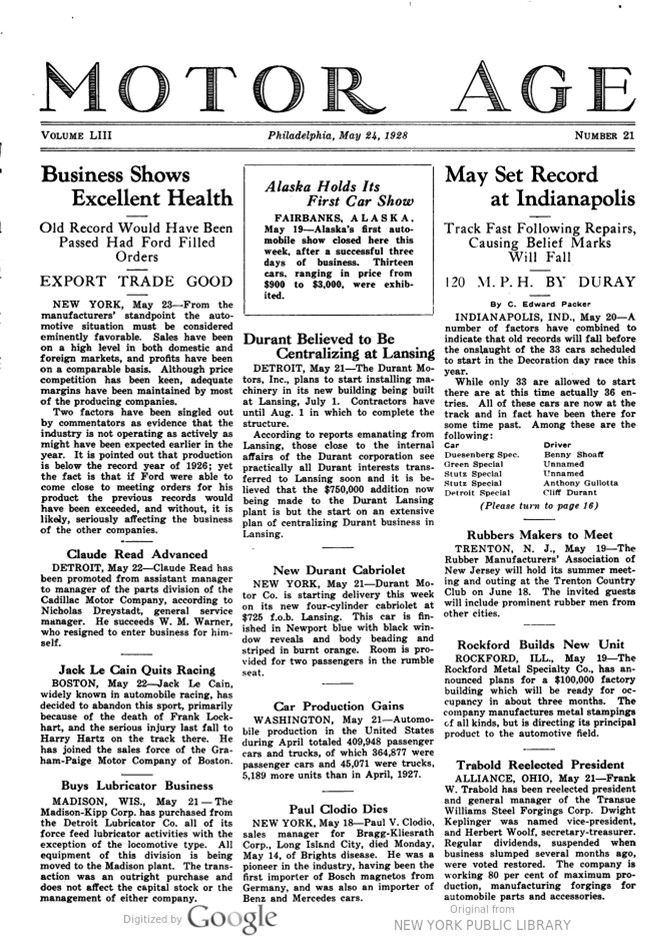 Motor Age, Vol. LIII, 53, No. 18, May 24, 1928