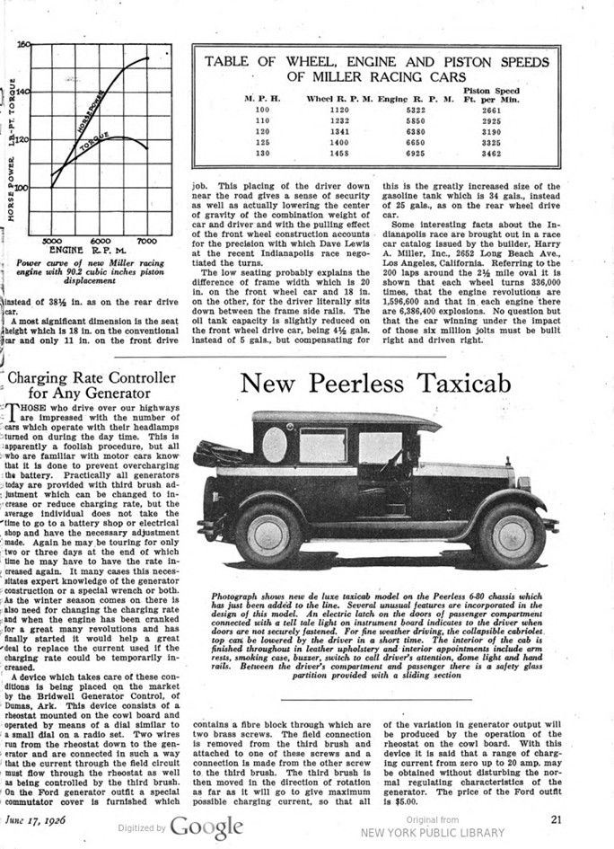 Some interesting facts about the Indianapolis race are brought out in a race car catalog issued by the builder, Harry A. Miller, Inc., 2652 Long Beach Ave., Los Angeles, California. Referring to the 200 laps around the 2½ mile oval it is shown that each wheel turns 336,000 times, that the engine revolutions are 1,596,600 and that in each engine there are 6,386,400 explosions. No question but that the car winning under the impact of those six million jolts must be built right and driven right.