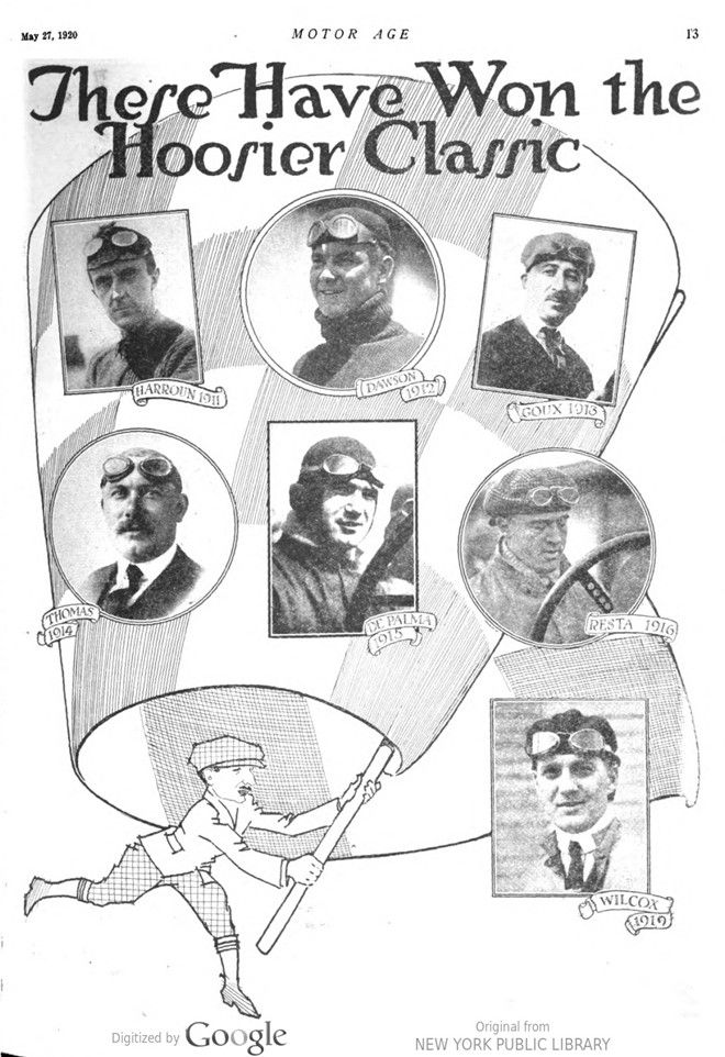 THOMAS 1914 – HARROUN 1911 – DAWSON 1912 – GOUX 1913 – DE PALMA 1915 – RESTA 1916 – WILCOX 1919