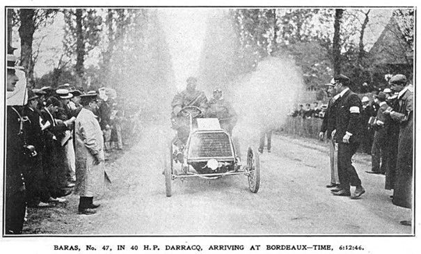 BARAS, No. 47, IN 40 H.P. DARRACQ, ARRIVING AT BORDEAUX – TIME, 6:12:46.