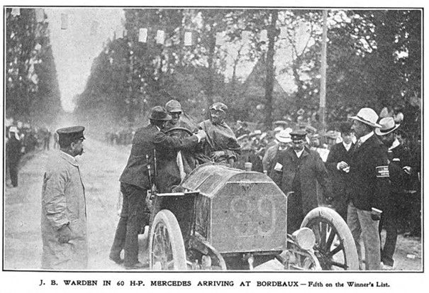 J. B. WARDEN IN 60 H.P. MERCEDES ARRIVING AT BORDEAUX – Fifth on the Winner’s List.