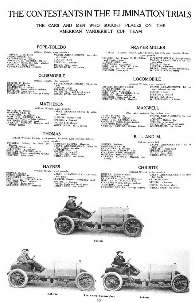 THE CARS AND MEN WHO SOUGHT PLACES ON THE AMERICAN VANDERBILT CUP TEAM