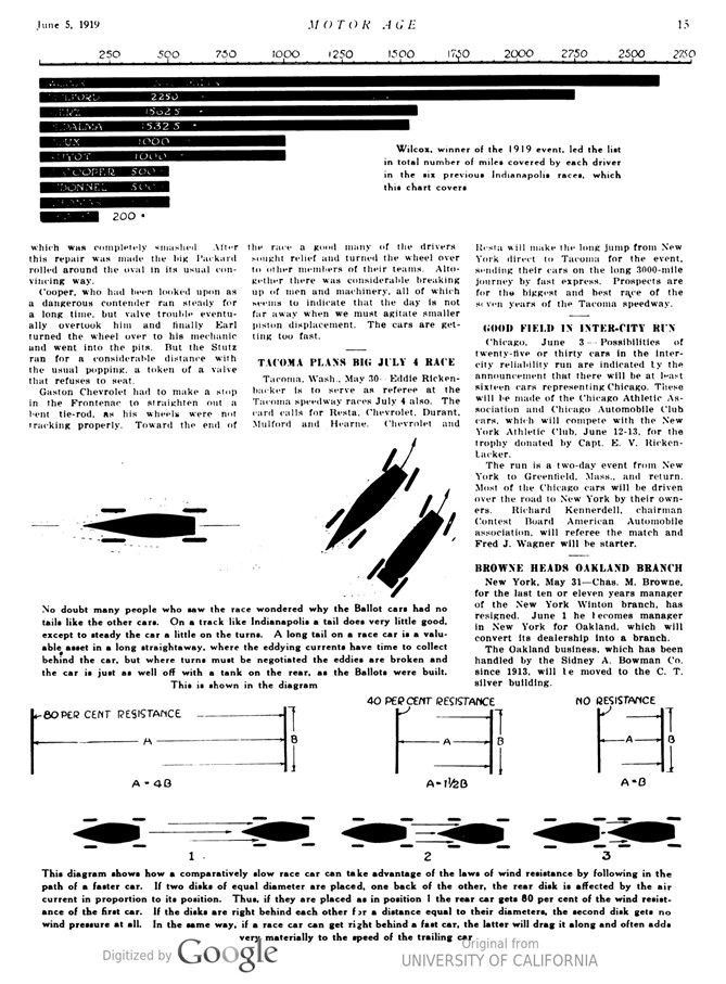 Wilcox, winner of the 1919 event, led the list in total number of miles covered by each driver in the six previous Indianapolis races, which this chart covers