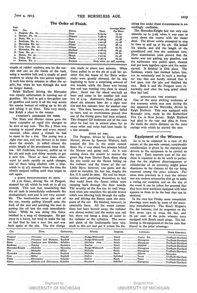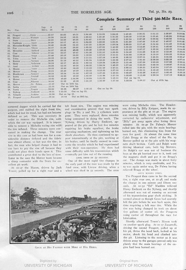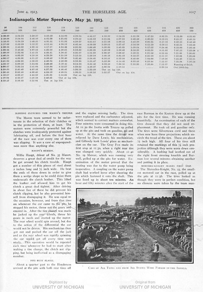 Page 1016 – 1017 Complete Summary of Third 500-Mile Race, Indianapolis Motor Speedway, May 30, 1913.