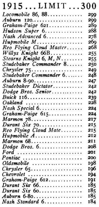 Originally it was intended that the piston displacement be limited to 300 cubic inches. Then somebody on the committee pointed out that this limit should be raised somewhat to permit the use of some of the larger eights such as Packard and Cadillac. Then a second man suggested that „while we were at it the limit should be raised to 6 litres since the litre is the measure of piston displacement in Europe. This idea was adopted and so the piston displacement became 366.14 cubic inches.