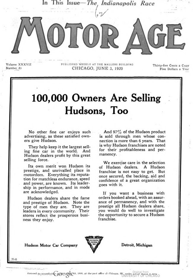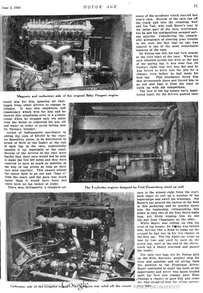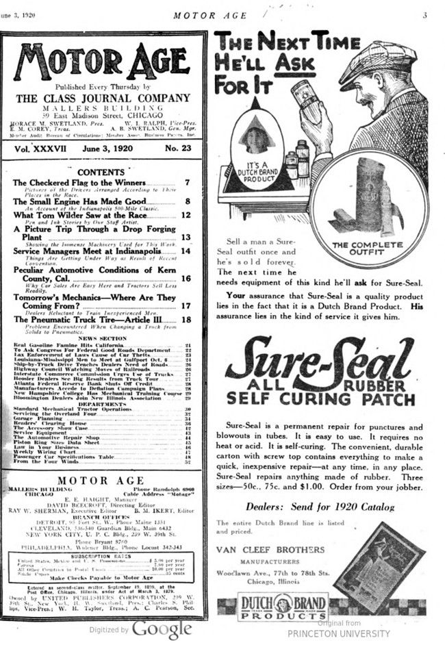 Motor Age, Vol. XXXVII, No. 23, June 3, 1920, page 7 – 12 / In This Issue: The Indianapolis Race