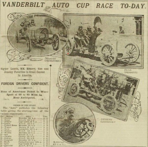 Signor Lancia, MM. Hemery, Sisz and Jenatzy Favorites in Great Contest in America.