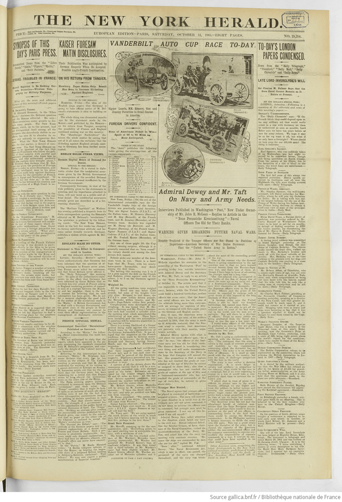 THE NEW YORK HERALD, European Edition, PARIS, SUNDAY, OCTOBER 14, 1905, page 1 and 3