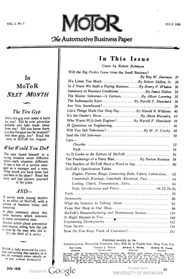 MoToR, Vol. L, 50, No. 1, July 1928