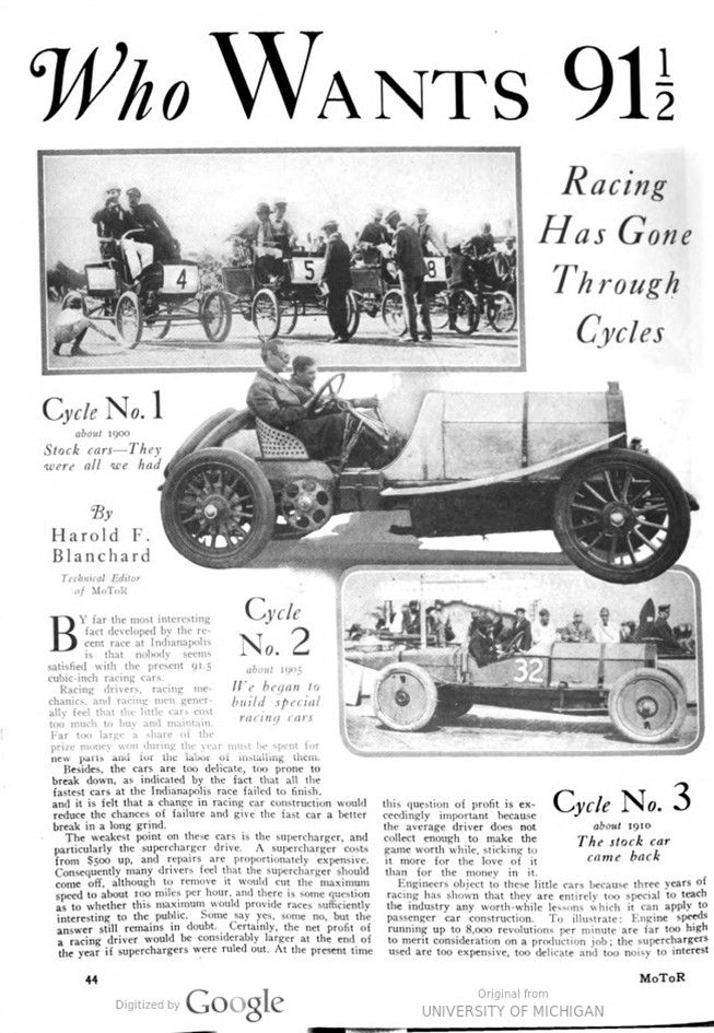 Cycle No. 3 about 1910 The stock car came back