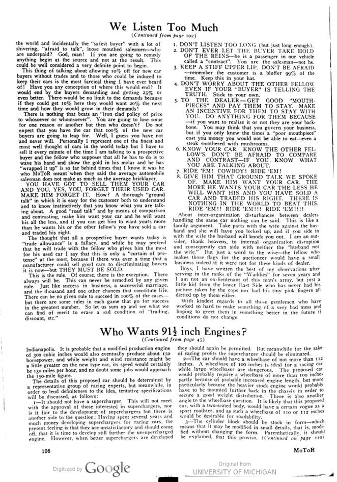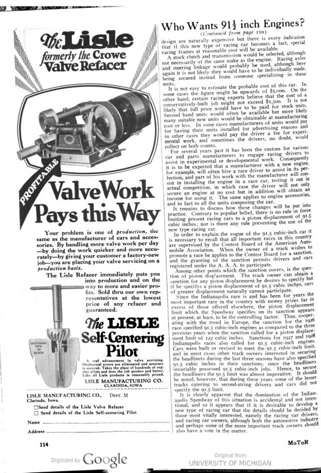 Who Wants 91 1/2 Inch Engines? – MoToR – July 1928